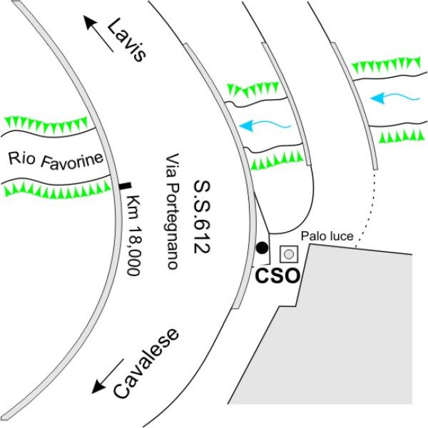 | Contrassegni | [{"simbolo_contrassegno":"B4","materializzazione":"(CSO) – Centrino universale infisso sulla sommit\u00e0 della spalla a monte riva sinistra del ponte sul Rio Favorine.."}] |