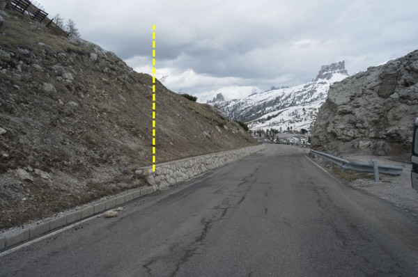 | Contrassegni | [{"simbolo_contrassegno":"B1","materializzazione":"(CSO) – Bullone infisso a 50 cm dall'inizio del muro di sostegno della strada, a sinistra in direzione Passo Falzarego."}] |