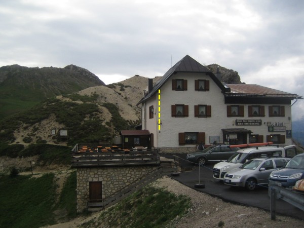 [{"simbolo_contrassegno":"B1","materializzazione":"(CSO) – Bullone infisso su muro di sostegno a sinistra direzione passo Falzarego e 100 m prima del rifugio Valparola."},{"simbolo_contrassegno":"V6","materializzazione":"(CSV) – Piastrina con cilindretto infissa sulla facciata spigolo sinistro del rifugio Valparola"}]