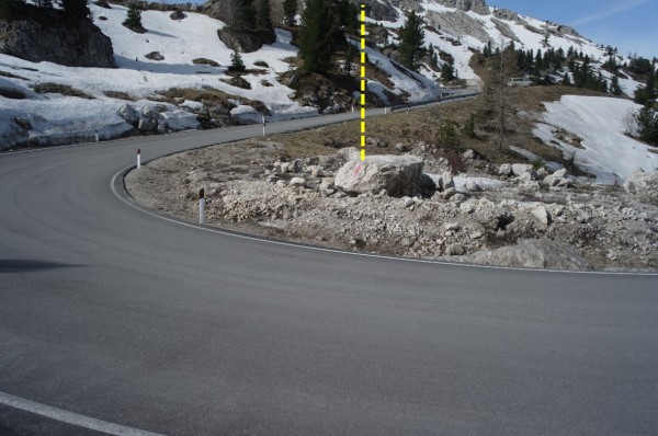 [{"simbolo_contrassegno":"B4","materializzazione":"(CSO) – Centrino universale infisso su di un masso posto nell'interno della curva del tornante della provinciale."}]