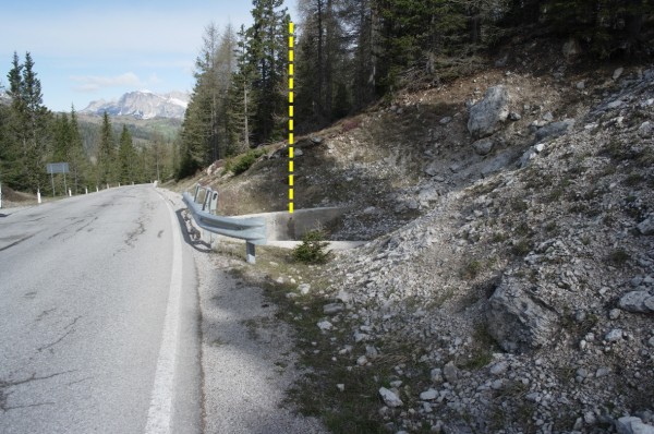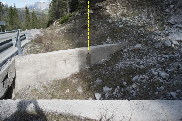 | Contrassegni | [{"simbolo_contrassegno":"B1","materializzazione":"(CSO) – Bullone infisso internamente al muro d'ala lato destro a monte del tombino, a sinistra direzione Passo Valparola."}] |