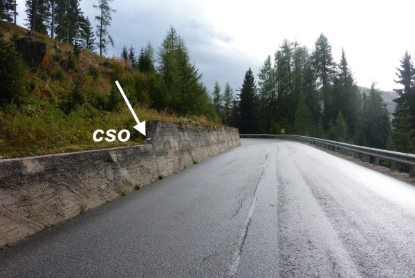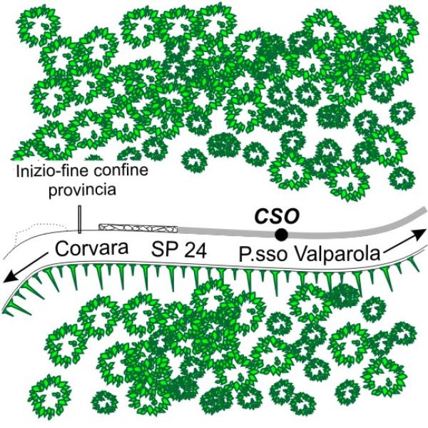 | Contrassegni | [{"simbolo_contrassegno":"B1","materializzazione":"(CSO) – Bullone infisso in un cambio di quota del muro in cemento di contenimento a monte della strada."}] |