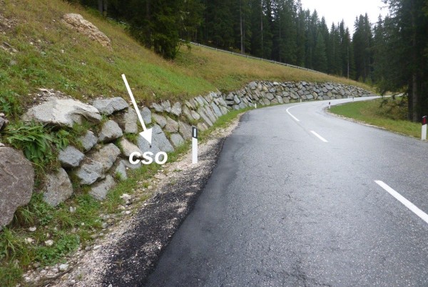 [{"simbolo_contrassegno":"B1","materializzazione":"(CSO) – Bullone infisso nel muro in pietra di contenimento della strada a destra direzione Corvara."}]