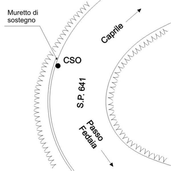 | Contrassegni | [{"simbolo_contrassegno":"B1","materializzazione":"(CSO) – Bullone infisso all'inizio del muro di sostegno, al 2\u00b0 tornante, direzione Passo Fedaia, della SP 641."}] |