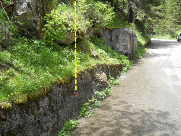 | Contrassegni | [{"simbolo_contrassegno":"B1","materializzazione":"(CSO) – Bullone infisso su muro di sostegno lato a sinistra dopo l' 11\u00b0 ponticello prima del manufatto vasca acquedotto, percorrendo la strada dei \"Serrai di Sottoguda\"."}] |