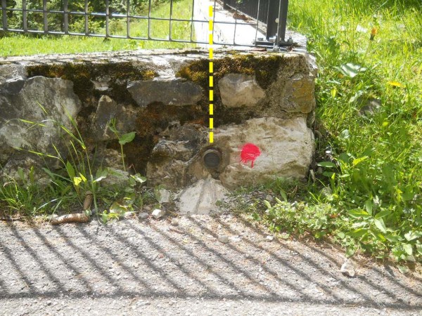 [{"simbolo_contrassegno":"B1","materializzazione":"(CSO) – Bullone infisso su muro di recinzione del depuratore, spigolo nord – est a sinistra, in prossimit\u00e0 dell'uscita della strada dei \"Serai di Sottoguda\"."}]
