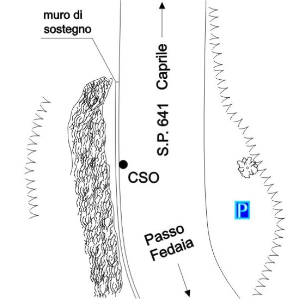 [{"simbolo_contrassegno":"B1","materializzazione":"(CSO) – Bullone infisso su muro di sostegno a destra della SP 641 che porta al Passo Fedaia"}]