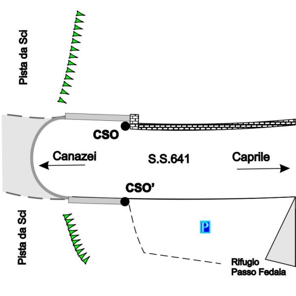 [{"simbolo_contrassegno":"B1","materializzazione":"(CSO) – Bullone infisso su muro del sovrappasso al Passo Fedaia, sul lato destro della SP 641 che da Caprile porta a Canazei"},{"simbolo_contrassegno":"B4","materializzazione":"(CSO') – Centrino universale infisso su muro del sovrappasso al Passo Fedaia, sul lato sinistro della SP 641 che da Caprile porta a Canazei."}]