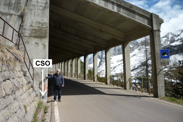 | Contrassegni | [{"simbolo_contrassegno":"B1","materializzazione":"(CSO) – Bullone infisso all'ingresso della galleria paramassi \"Peles 3\", spalla sinistra."}] |
