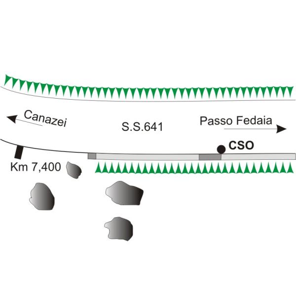 | Contrassegni | [{"simbolo_contrassegno":"B1","materializzazione":"(CSO) – Bullone infisso nel muro di contenimento in pietra nel lato a monte della strada in corrispondenza del cambio di altezza dello stesso."}] |