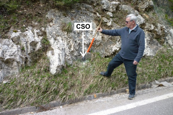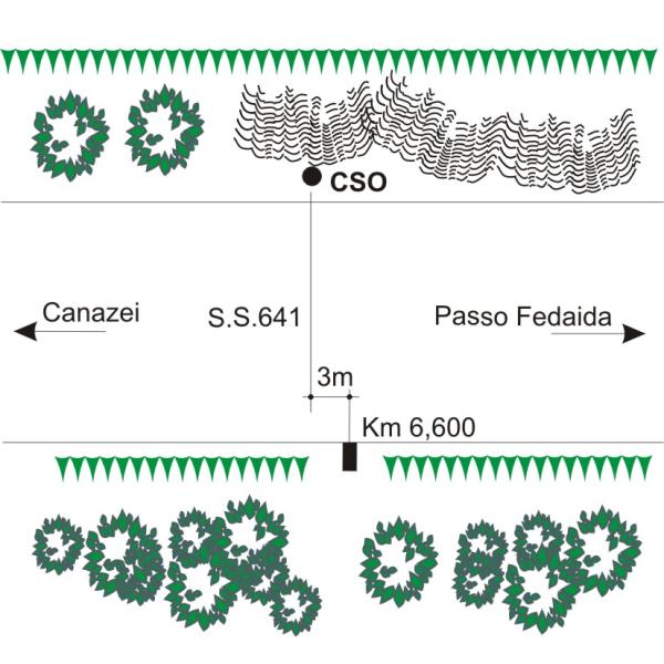 | Contrassegni | [{"simbolo_contrassegno":"B1","materializzazione":"(CSO) – Bullone infisso su roccia affiorante nel lato a monte della statale a circa 3 metri a valle del segnale ettometrico."}] |