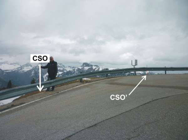 | Contrassegni | [{"simbolo_contrassegno":"B1","materializzazione":"(CSO) – Bullone infisso nel muro di contenimento a valle del 3\u00b0 tornante."},{"simbolo_contrassegno":"B7","materializzazione":"(CSO') – Centrino in ghisa di superficie del Catasto di Trento infisso sulla sommit\u00e0 del muro di fronte al cartello del 3\u00b0 tornante. Coincidente con Punto Fiduciale n.066-PF.16."}] |