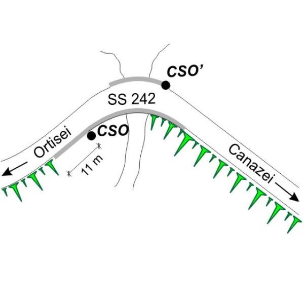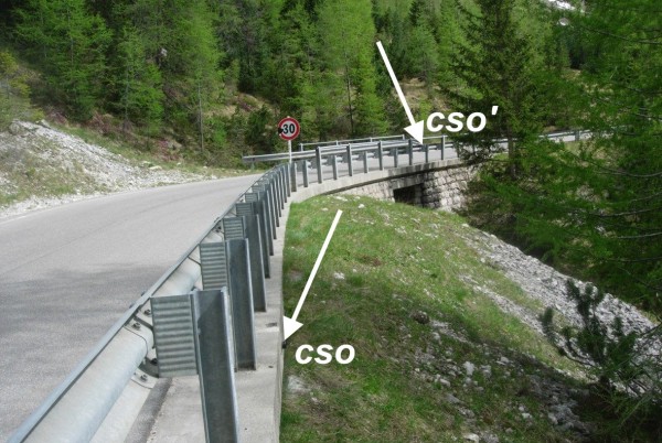 | Contrassegni | [{"simbolo_contrassegno":"B1","materializzazione":"(CSO) – Bullone infisso nel muro del guard rail a valle della strada."},{"simbolo_contrassegno":"B4","materializzazione":"(CSO') – Centrino universale posto nel muro a monte del ponticello orografica sinistra."}] |
