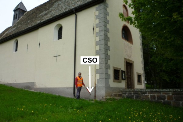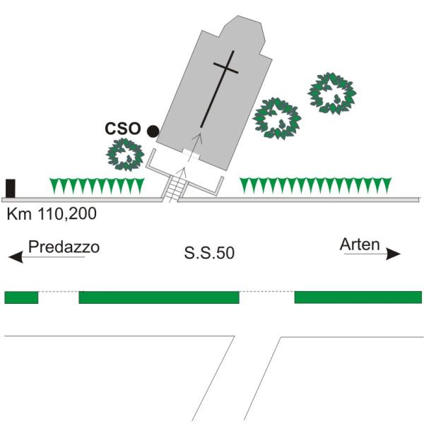 [{"simbolo_contrassegno":"B1","materializzazione":"(CSO) – Bullone infisso presso lo spigolo destro della facciata laterale sinistra della Chiesa."}]