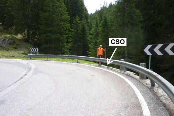 [{"simbolo_contrassegno":"B1","materializzazione":"(CSO) – Bullone infisso nel muro di contenimento di valle del tornante."}]