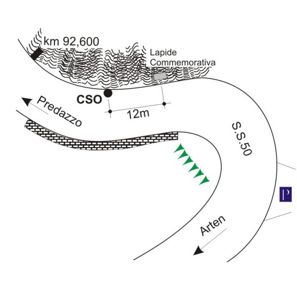 | Contrassegni | [{"simbolo_contrassegno":"B1","materializzazione":"(CSO) – Bullone infisso su roccia a monte della strada a circa 0,50 metri a sinistra di una griglia e a circa 12 m da una lapide commemorativa posta sulla destra."}] |