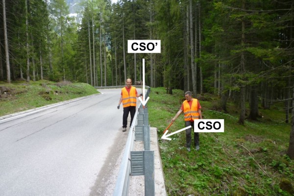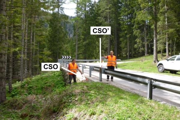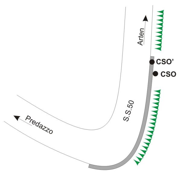 | Contrassegni | [{"simbolo_contrassegno":"B1","materializzazione":"(CSO) – Bullone infisso presso l'estremit\u00e0 rivolta ad Arsie del muro di contenimento di valle del tornante."},{"simbolo_contrassegno":"B4","materializzazione":"(CSO') – Centrino universale infisso sulla sommit\u00e0 del suddetto muro a circa 0,50 metri a sinistra del CSO. Coincidente con Punto Fiduciale n.400-PF.24."}] |