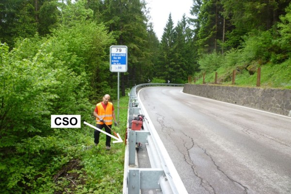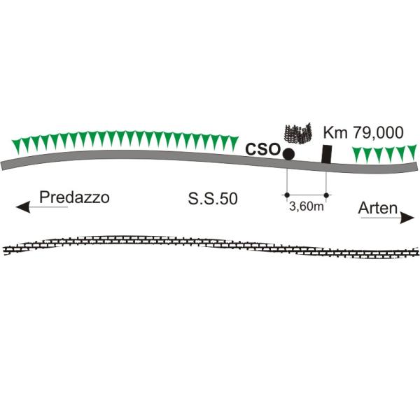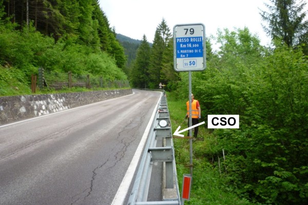 | Contrassegni | [{"simbolo_contrassegno":"B1","materializzazione":"(CSO) – Bullone infisso nel cordolo in cemento armato di valle a circa 3,60 metri dal segnale chilometrico."}] |