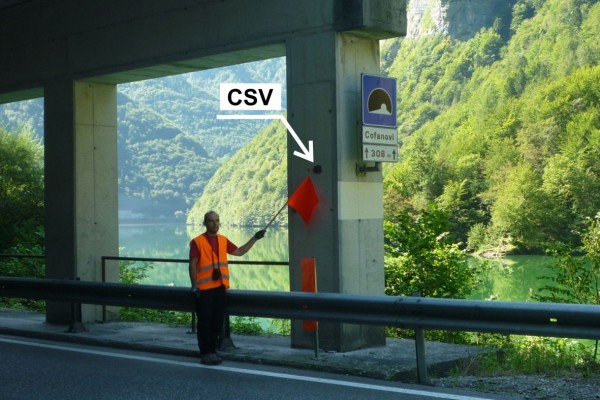 [{"simbolo_contrassegno":"B1","materializzazione":"(CSO) – Bullone infisso nella spalla della Galleria Paramassi sul lato rivolto a Predazzo."},{"simbolo_contrassegno":"V6","materializzazione":"(CSV) – Piastrina con cilindretto infissa nel lato interno del primo pilastro della Galleria."}]
