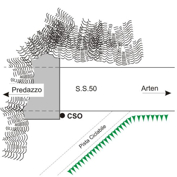 [{"simbolo_contrassegno":"B1","materializzazione":"(CSO) – Bullone infisso nella testata a sinistra della volta della galleria entrando in direzione di Predazzo."}]