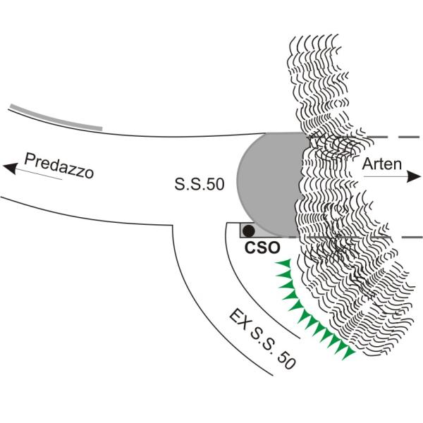 | Contrassegni | [{"simbolo_contrassegno":"B4","materializzazione":"(CSO) – Centrino universale infisso sulla sommit\u00e0 del marciapiede dell'ingresso Nord della galleria Pedesalto, direzione Arten a destra."}] |