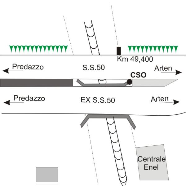 [{"simbolo_contrassegno":"B1","materializzazione":"(CSO) – Bullone infisso nella spalla destra del ponte della condotta forzata, in corrispondenza alla centrale elettrica."}]