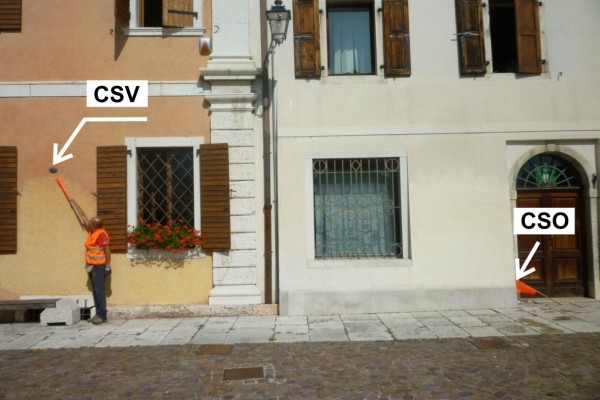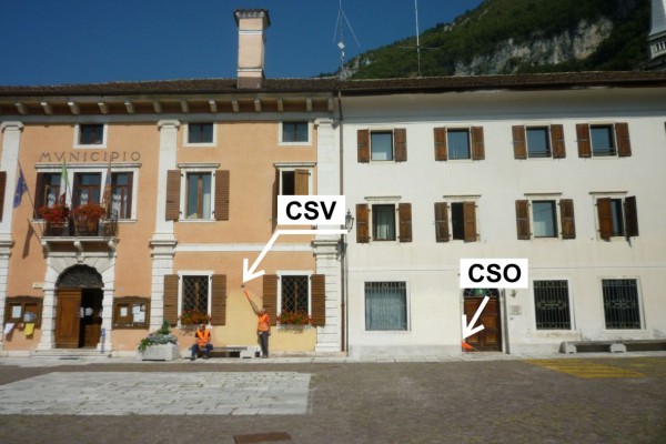 [{"simbolo_contrassegno":"B1","materializzazione":"(CSO) – Bullone infisso nello stipite sinistro della porta d'ingresso della Polizia Municipale."},{"simbolo_contrassegno":"V6","materializzazione":"(CSV) – Piastrina con cilindro murata nella facciata principale del Municipio nel mezzo alle due finistre poste a sinistra dell'ingresso."}]