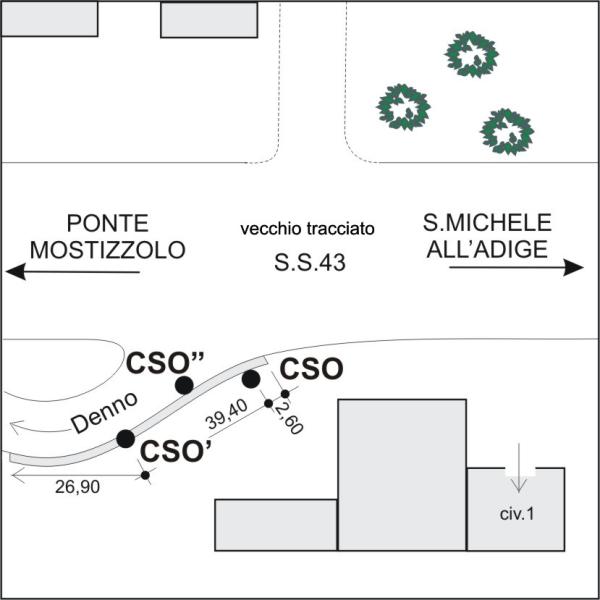 | Contrassegni | [{"simbolo_contrassegno":"B1","materializzazione":"(CSO) – Bullone infisso nel muro in cemento armato a retta della strada provinciale 73 in corrispondenza del bivio con Denno."},{"simbolo_contrassegno":"B4","materializzazione":"(CSO') – Centrino universale infisso alla sommit\u00e0 del muro suddetto a circa 39.40 metri dal CSO."},{"simbolo_contrassegno":"B7","materializzazione":"(CSO'') – Contrassegno di altro ente ( punto fiduciale PAT) infisso tra il CSO e il CSO'."}] |