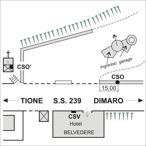 | Contrassegni | [{"simbolo_contrassegno":"B4","materializzazione":"(CSO) – Centrino universale infisso nel muro a retta di monte a circa 15 metri dalla testa rivolta a Tione."},{"simbolo_contrassegno":"B1","materializzazione":"(CSO') – Bullone PAT infisso nella facciata principale delle cappelle a destra dell'accesso ubicato quasi di fronte all' Hotel Belvedere."},{"simbolo_contrassegno":"V3","materializzazione":"(CSV) – Piastrina antica infissa nella facciata principale dell'Hotel Belvedere a circa 4 metri a destra dell'ingresso all'Hotel. (Attualmente sotto la piastrina \u00e8 collocata una scatola elettrica che impedisce la misura corretta).N.B. Probabilmente \u00e8 stata spostata durante la ristrutturazione."}] |