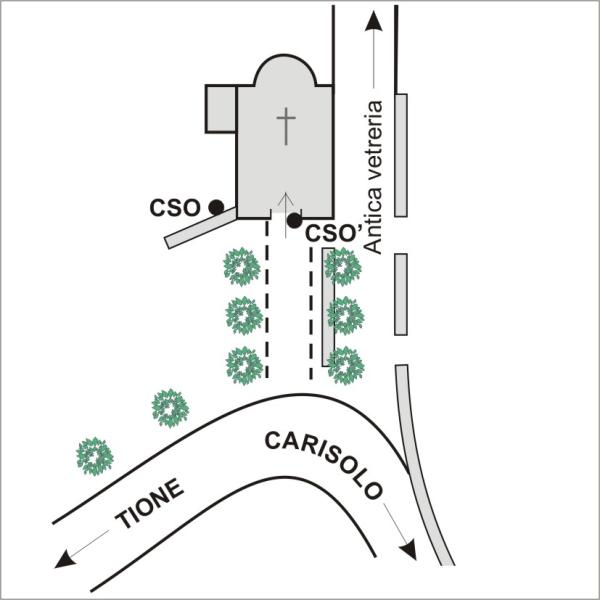 | Contrassegni | [{"simbolo_contrassegno":"B1","materializzazione":"(CSO) – Bullone infisso nella parte posteriore del muro in cemento rivestito in pietra a sinistra della chiesa."},{"simbolo_contrassegno":"B3","materializzazione":"(CSO') – Circolo inciso nel gradino della porta d'ingresso del santuario a destra entrando."}] |