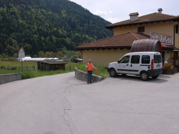 [{"simbolo_contrassegno":"B4","materializzazione":"(CSO) – Centrino universale infisso alla sommit\u00e0 del muro a retta vicino a \"Casa del Vin\" prossimo alla testa rivolta alla statale."}]