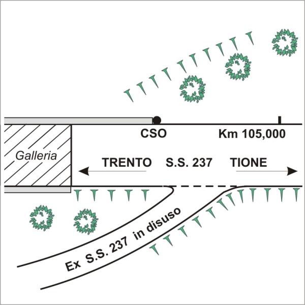 | Contrassegni | [{"simbolo_contrassegno":"B1","materializzazione":"(CSO) – Bullone infisso nella testa del muro in cemento armato di contenimento posto all'inizio della galleria Limar\u00f2 lato Tione."}] |