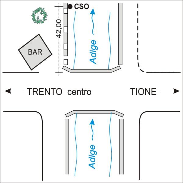 | Contrassegni | [{"simbolo_contrassegno":"B1","materializzazione":"(CSO) – Bullone PAT infisso all'esterno dell'argine in muratura della riva sinistra lato valle all'inizio del parapetto in muratura."}] |