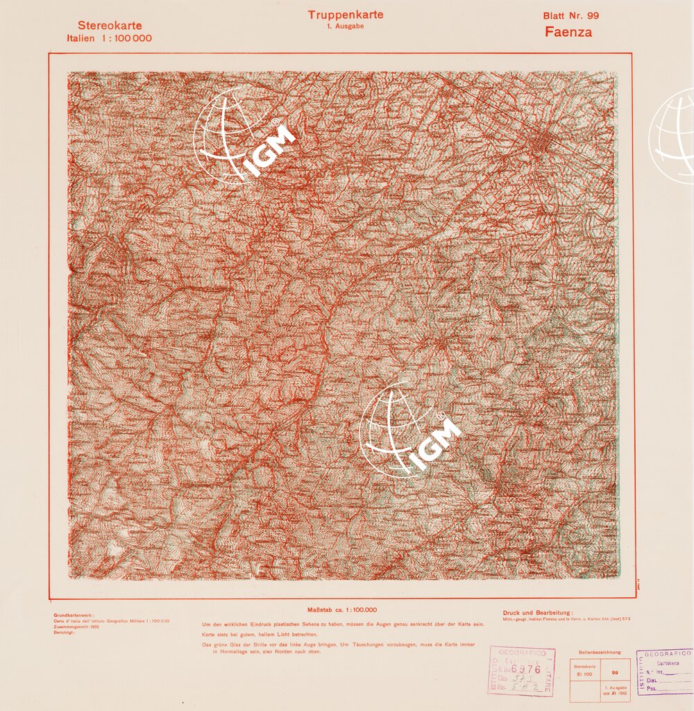 Rappresentazione orografica a curve di livello. Grafia italiana tedesca. I.G.M. (FI).