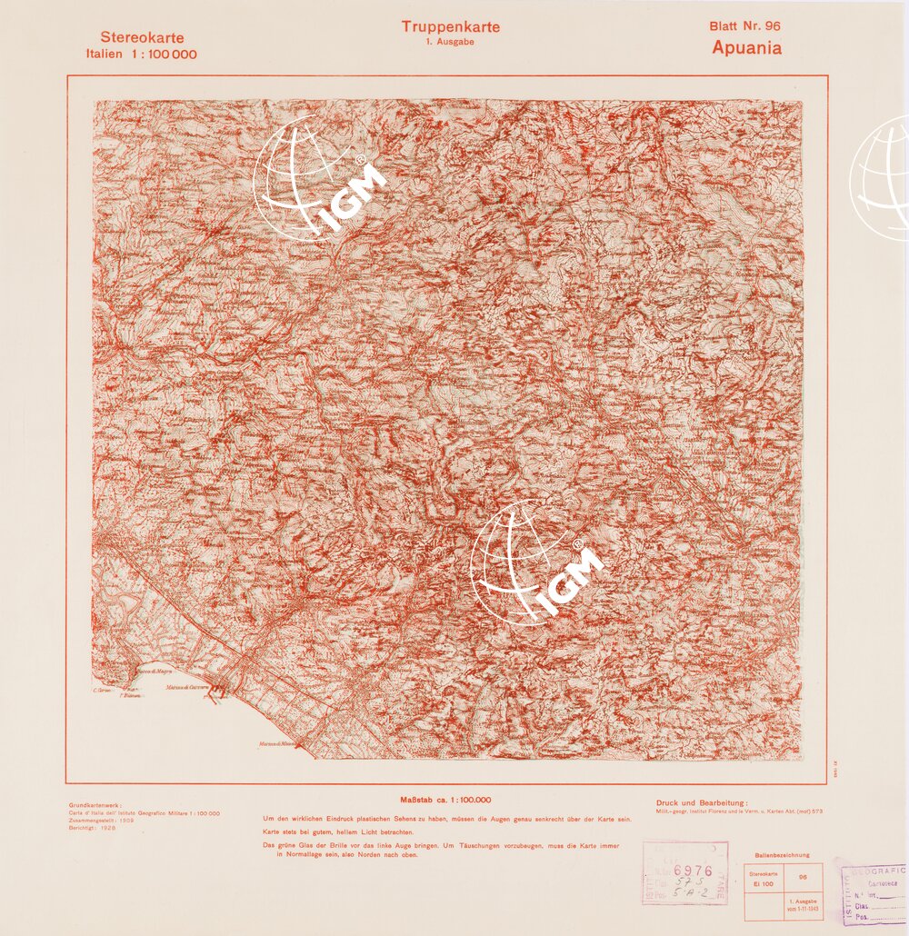 Rappresentazione orografica a curve di livello. Grafia italiana tedesca. I.G.M. (FI).