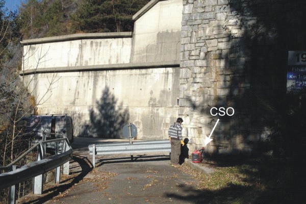| Contrassegni | [{"simbolo_contrassegno":"B1","materializzazione":"(CSO) – Bullone infisso alla base del muro esterno in pietra della galleria, all'imbocco di una strada dismessa."}] |