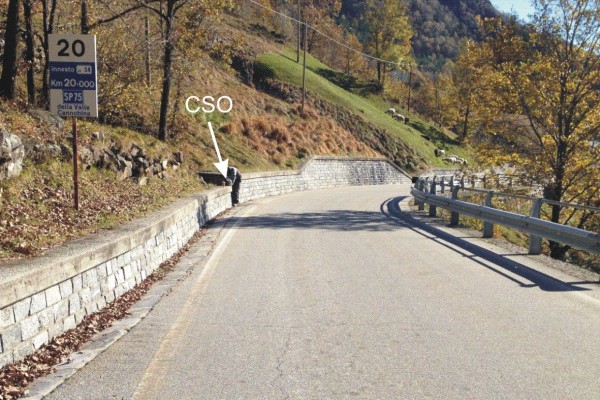 | Contrassegni | [{"simbolo_contrassegno":"B1","materializzazione":"(CSO) – Bullone infisso sul cordolo di coronamente del muro in pietra, in corriposndenza del tombino di raccolta delle acque piovane, lato destro direzione Finero."}] |