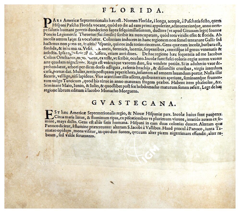 THEATRUM ORBIS TERRARUM (ATLANTE DELL’ ORTELIO) A COLORI – FLORIDA, GUASTECANA TESTO