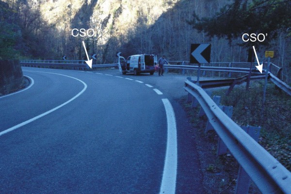 [{"simbolo_contrassegno":"B1","materializzazione":"(CSO) – Bullone infisso nel cordolo in calcestruzzo della piazzola prossima alla galleria Casermetta, a destra della strada direzione Masera."},{"simbolo_contrassegno":"B4","materializzazione":"(CSO') – Centrino universale infisso sul cordolo in calcestruzzo di sostegno al guard-rail della piazzola, lato opposto al CSO, a destra della strada direzione Masera."}]