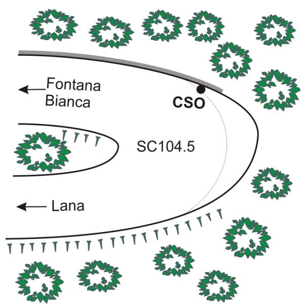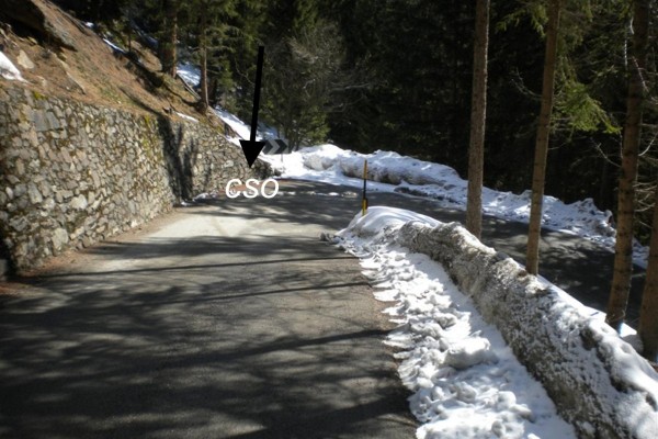 | Contrassegni | [{"simbolo_contrassegno":"B1","materializzazione":"(CSO) – Bullone infisso nel muro di sostegno, in pietra naturale, a monte nel tornante."}] |
