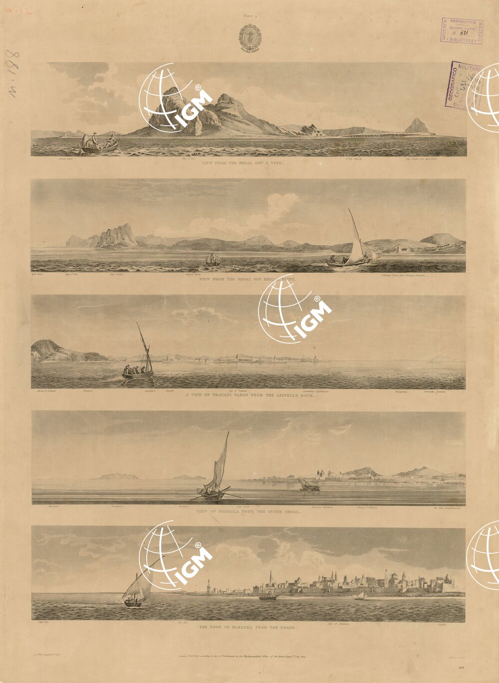 Rappresentazione orografica prospettica. Capt. W. H. Smyth; J. Walker sculpt. Ammiragliato Britannico, Londra.