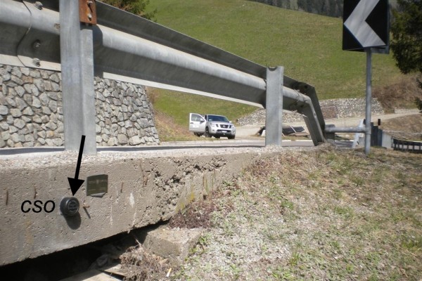 [{"simbolo_contrassegno":"B1","materializzazione":"(CSO) – Bullone infisso nel cordolo in cemento armato del guard rail a valle ."}]