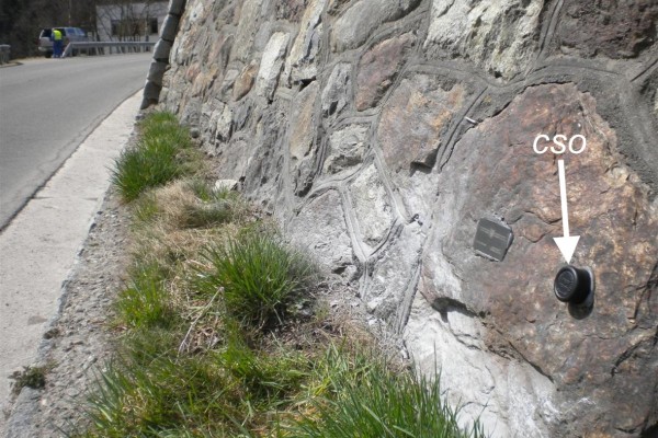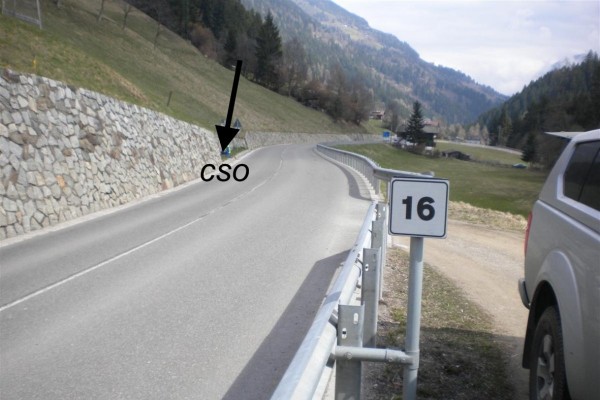 [{"simbolo_contrassegno":"B1","materializzazione":"(CSO) – Bullone nel muro a monte in pietre naturali in prossimit\u00e0 della chilometrica."}]