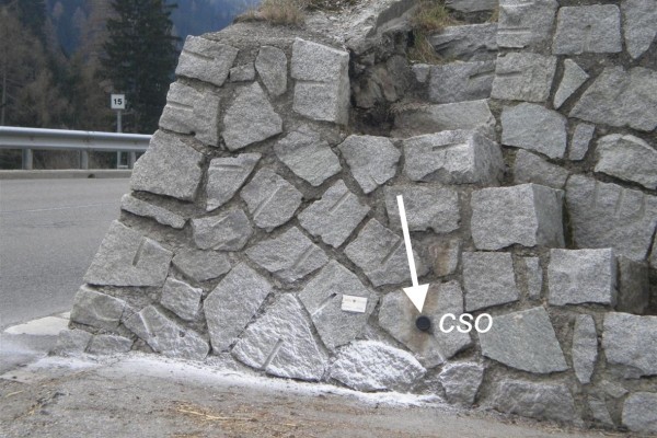 | Contrassegni | [{"simbolo_contrassegno":"B1","materializzazione":"(CSO) – Bullone infisso nel muro d'accesso, in pietre naturali, in prossimit\u00e0 della pietra chilometrica."}] |
