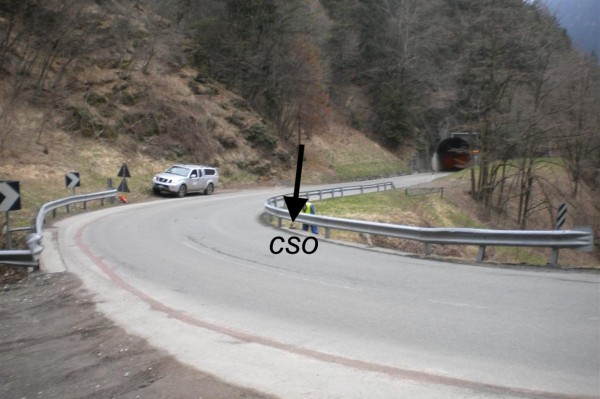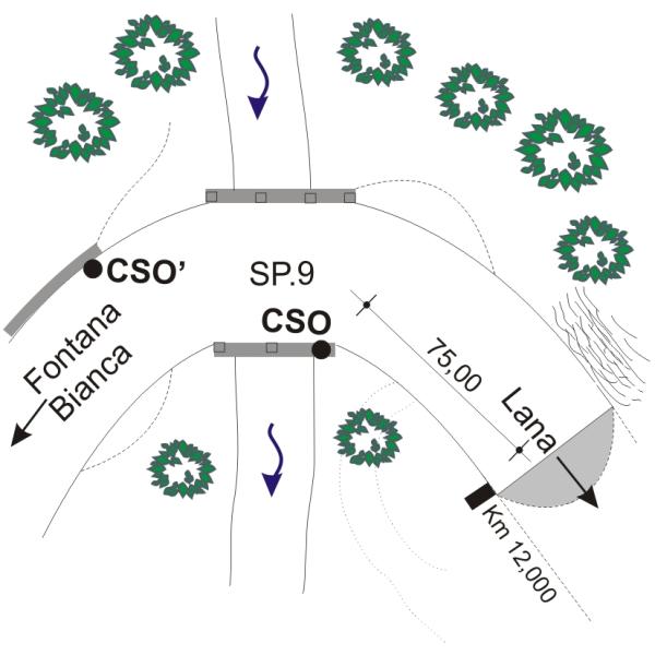 | Contrassegni | [{"simbolo_contrassegno":"B4","materializzazione":"(CSO) – Centrino universale posto sul cordolo del ponte a valle, direzione Lana."},{"simbolo_contrassegno":"B1","materializzazione":"(CSO') – Bullone infisso sul muro di sostegno in pietre naturali, a monte, in prossimit\u00e0 dell ponte."}] |