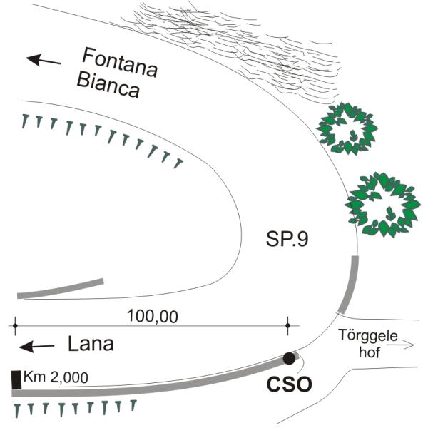 [{"simbolo_contrassegno":"B4","materializzazione":"(CSO) – Centrino universale infisso nel cordolo del tornante, subito a destra del sentiero che porta al \"T\u00f6rggelehof\"."}]