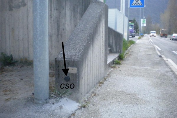 | Contrassegni | [{"simbolo_contrassegno":"B1","materializzazione":"(CSO) – Bullone infisso sul muro in cemento armato, che si trova in prossimit\u00e0 della scala che porta alla Mensa \"Caff\u00e8 Manuel\"."}] |