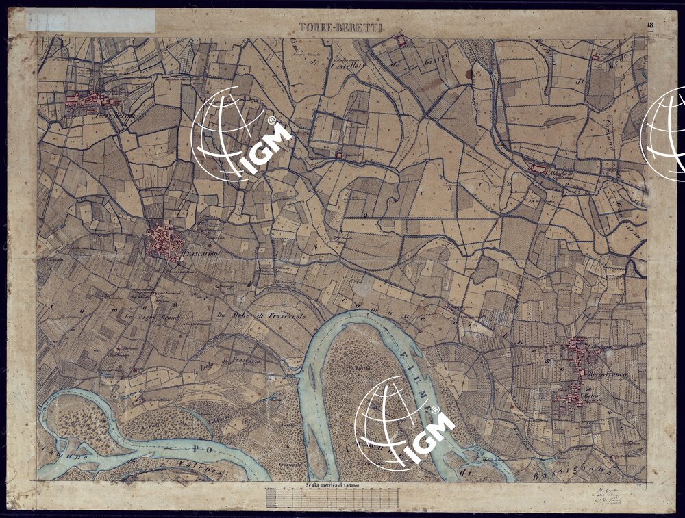 TERRITORIO COMPRESO TRA ALESSANDRIA, CASALE, VOLPEDO E TRA PAVIA, CASTEGGIO E PIACENZA TORRE-BERETTI – FOGLIO 18.