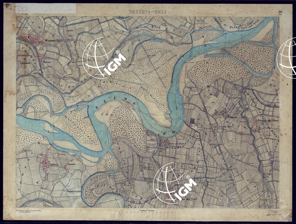 Gruppo di 55 tavolette rilevate da ufficiali dello Stato Maggiore. Quarantacinque di esse sono formate dalla riunione di rilievi parziali e ridisegnate in ufficio; undici sono rilievi originali di campagna. Alcune sono aggiornate al 1885 in base a nuove ricognizioni ed alle levate al 25.000. Ciascuna reca la firma degli operatori e dei revisori. esse rappresentano l’orografia a curve di livello tracciate alla equidistanza di 5 m.; abitati in rosso, acque in azzurro, rimanente della planimetria e toponomastica in nero. Fogli montati su tela.