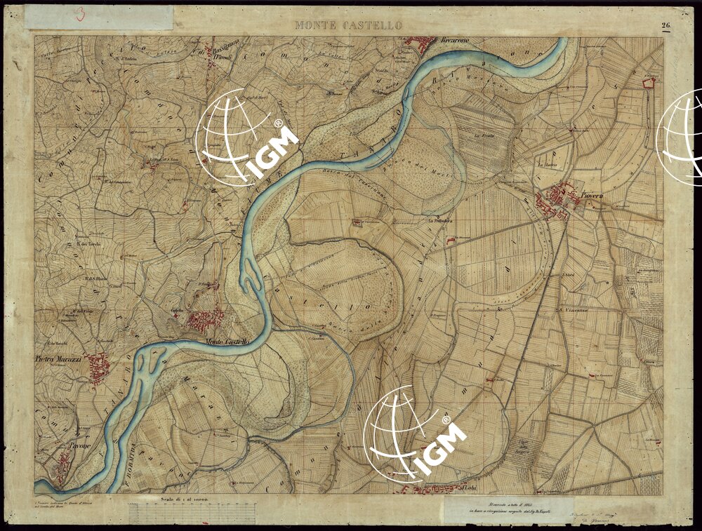 Gruppo di 55 tavolette rilevate da ufficiali dello Stato Maggiore. Quarantacinque di esse sono formate dalla riunione di rilievi parziali e ridisegnate in ufficio; undici sono rilievi originali di campagna. Alcune sono aggiornate al 1885 in base a nuove ricognizioni ed alle levate al 25.000. Ciscuna reca la firma degli operatori e dei revisori. Esse rappresentano l’orografia a curve di livello tracciate alla equidistanza di 5 m.; abitati in rosso, acque in azzurro, rimanente della planimetria e toponomastica in nero. Fogli montati su tela.